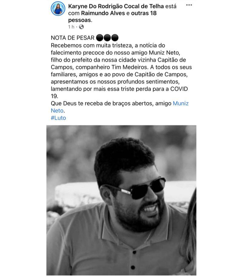 Muniz Neto de 34 anos, que é secretário municipal de Saúde, estava internado na Unidade de Terapia Intensiva (UTI) com complicações graves da doença.