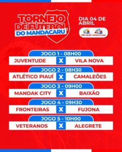O tradicional torneio do Povoado Mandacaru já se consolidou como o maior evento esportivo do povoado, reunindo atletas, torcedores e movimentando toda a comunidade. A competição faz parte do calendário esportivo oficial do município e promete mais uma edição de sucesso no Sábado de Aleluia.